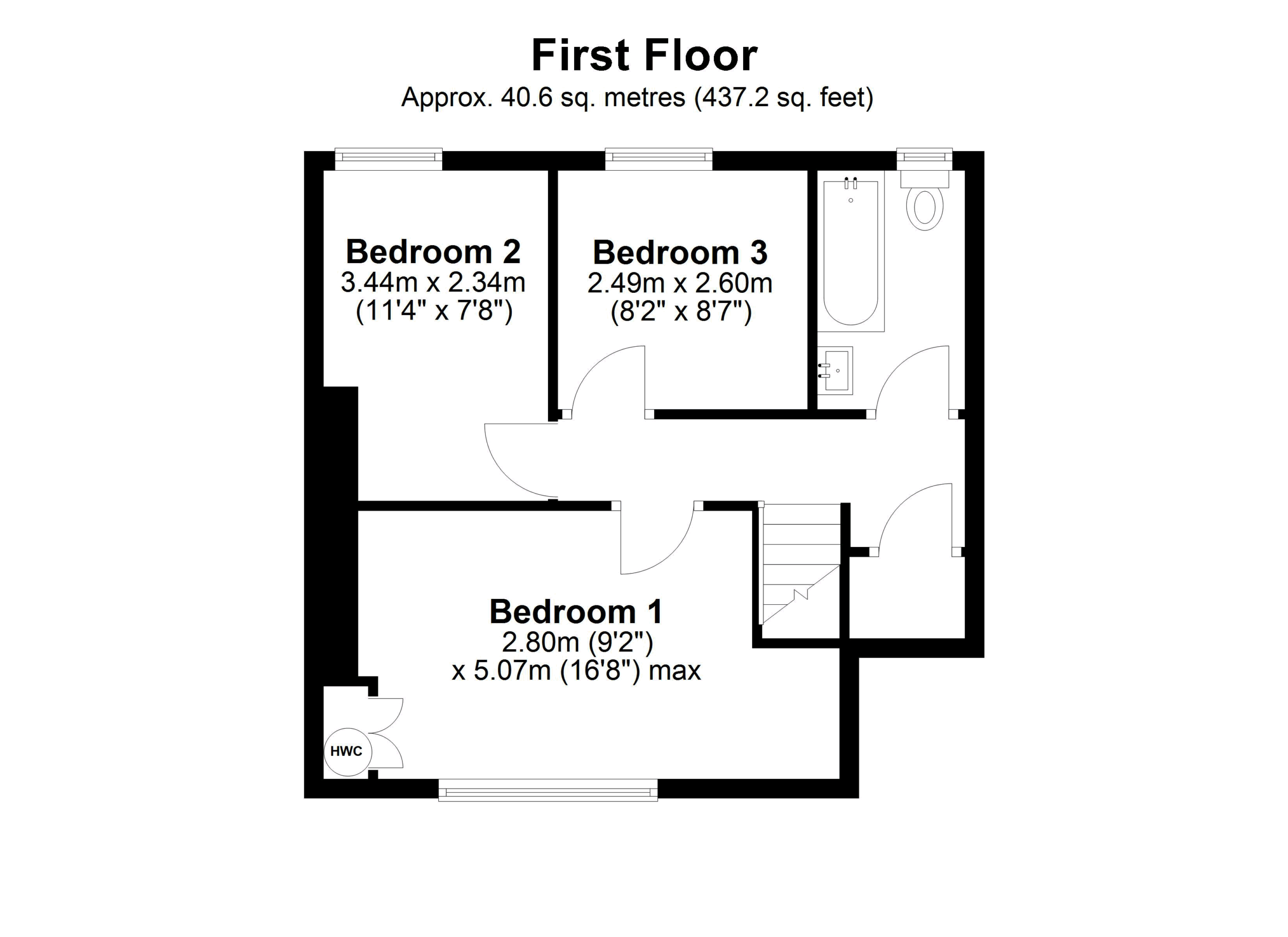 - First floor: Landing, three bedrooms and house bathroom