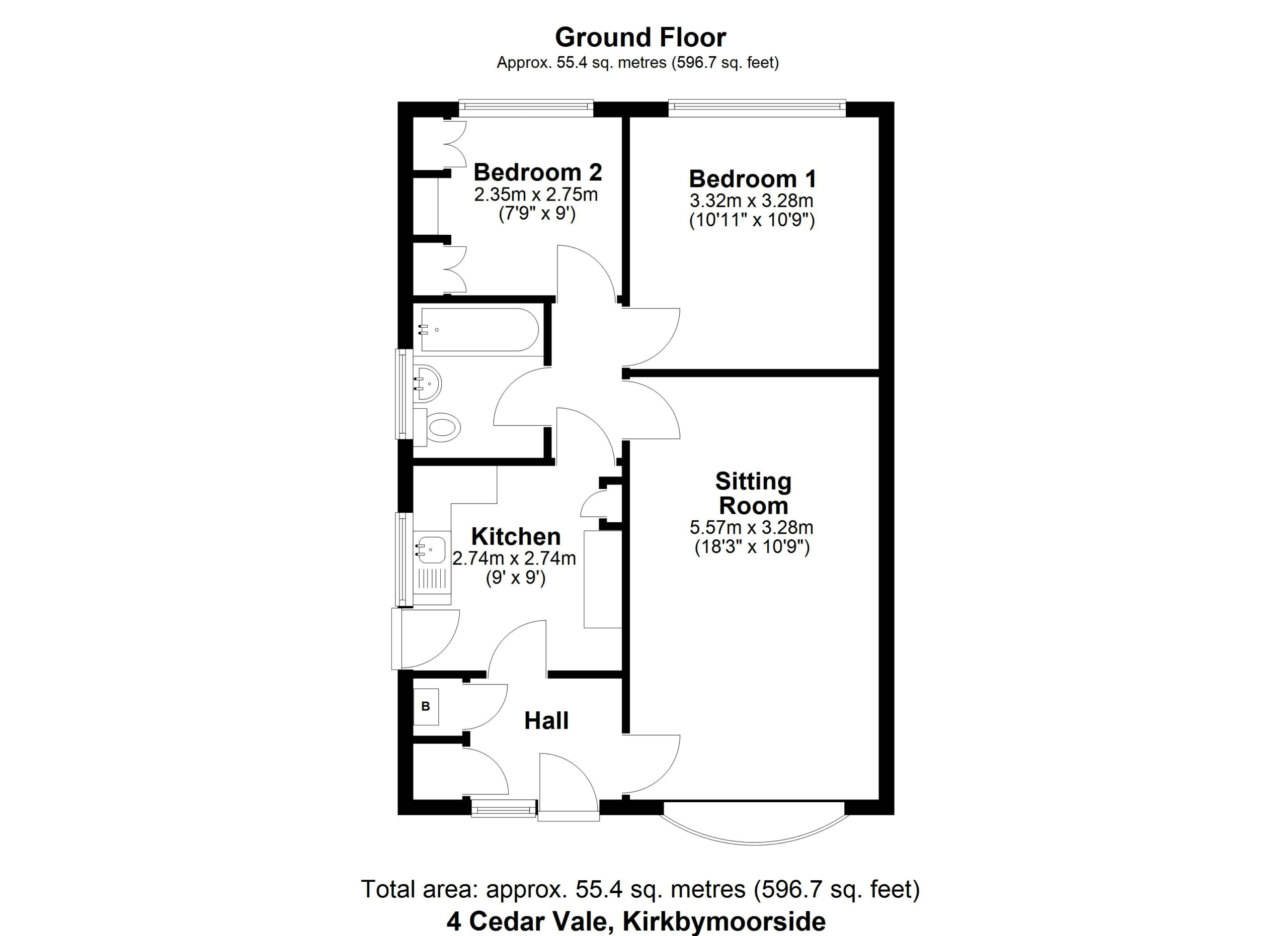 The accommodation includes an entrance hall leading to a good sized sitting room/dining area with a wide front window providing generous natural light. The kitchen, located to the side, offers direct access onto the drive and provides scope for refurbishment. There are two bedrooms - one double and one single - along with a bathroom arranged off the inner hallway.