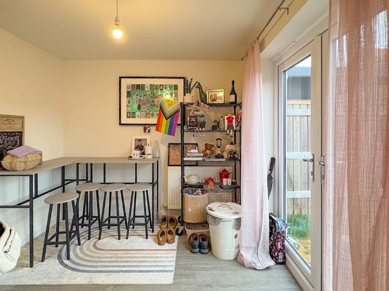 - Front entrance lobby, cloakroom, sitting room, kitchen/dinin garea with double doors to rear garden