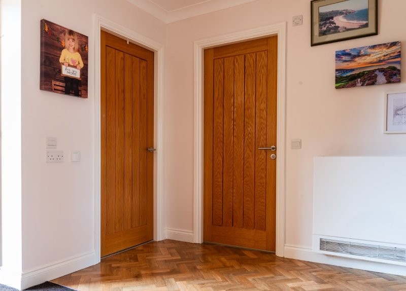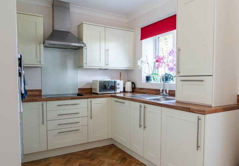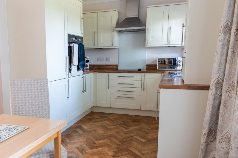 - Kitchen leading into living/dining area, two bedrooms, jack and jill shower room into bedroom one, reception hall with store cupboard