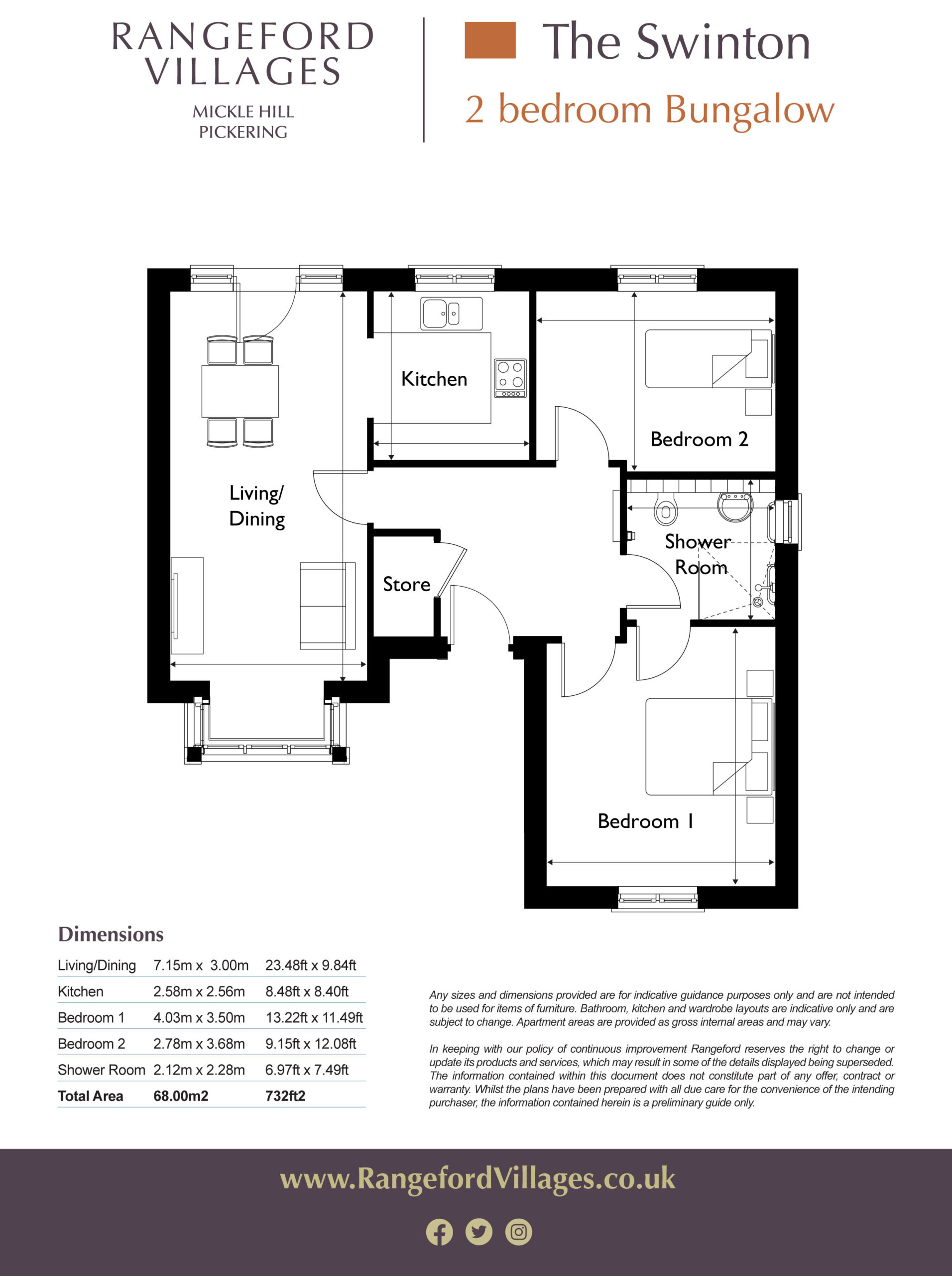 The development known as Mickle Hill is purpose built as a retirement village for the over 60’s. No 36 is a luxury two bedroom mid terrace of three, bungalow with a double aspect that offers an exceptional level of privacy to the private amenity area and an enviable sunny disposition providing excellent internal daylighting.